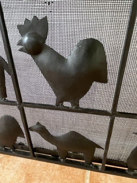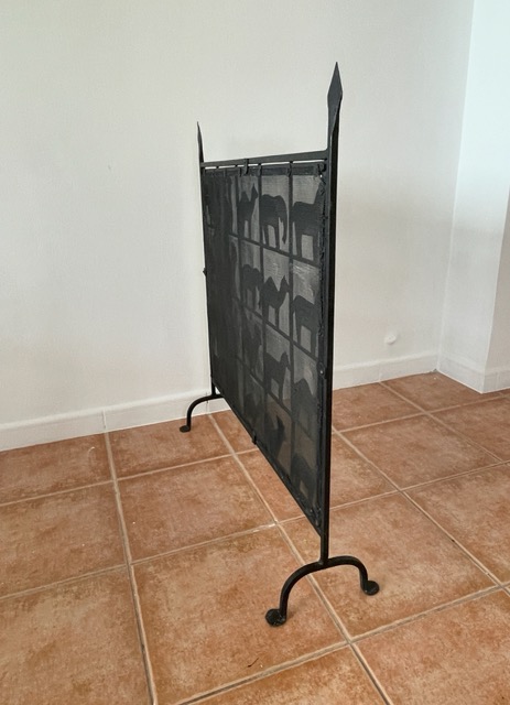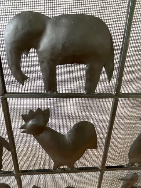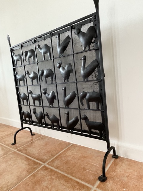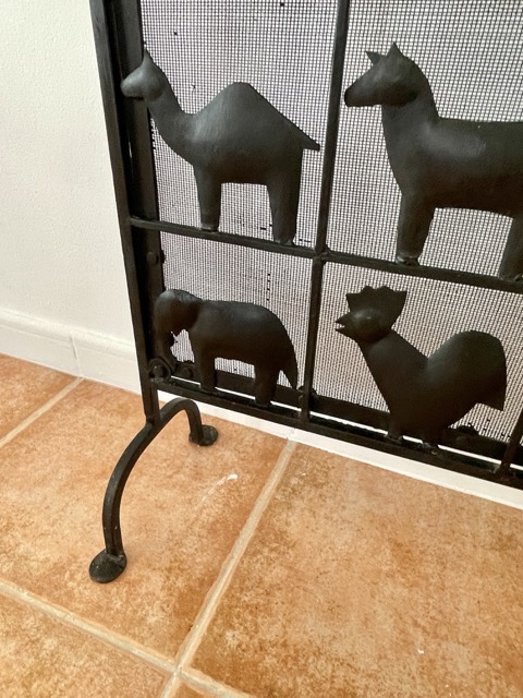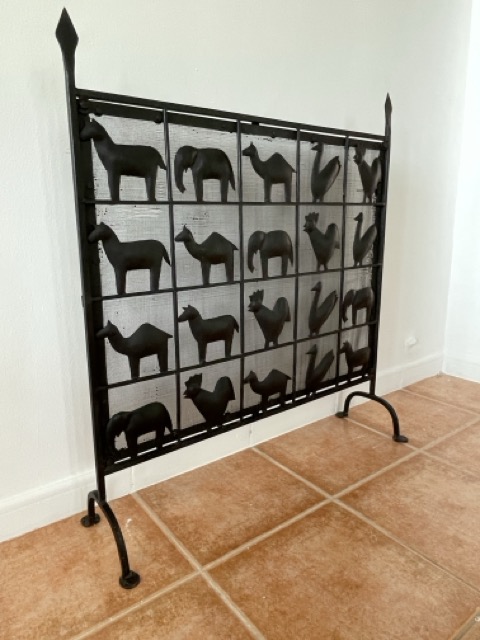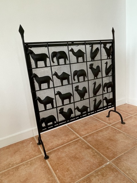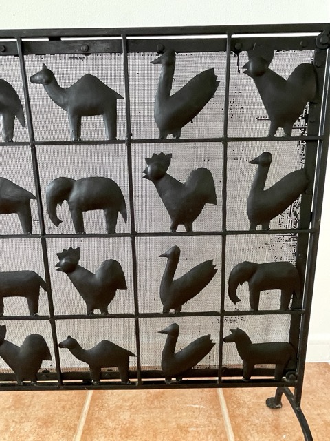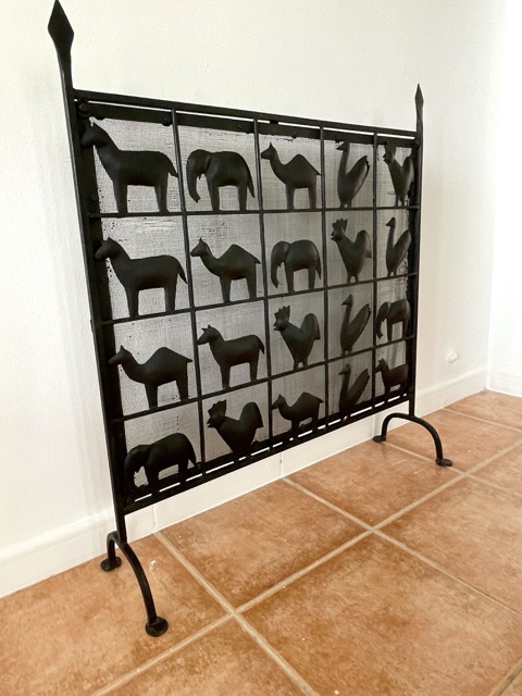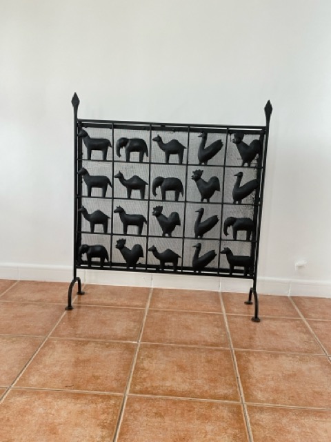 Esta llamativa pieza está hecha de hierro forjado, lo que le da un aspecto precioso. Lo más llamativo de la pieza son las diversas formas de animales en cada cuadrado, que también contribuyen muy bien a la atmósfera al difundir la luz de la chimenea.